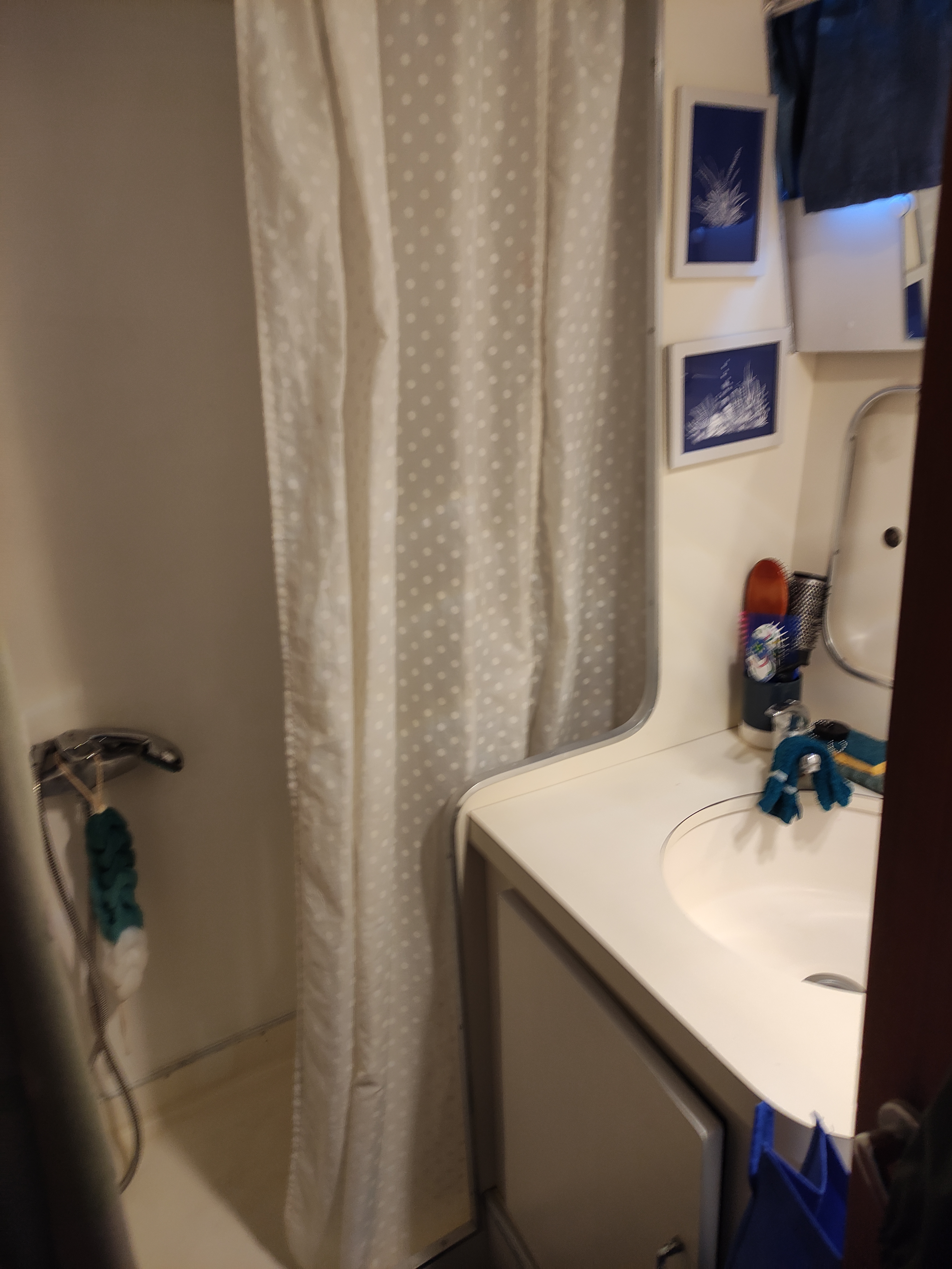 L’accès aux sanitaires et au parking privé se fait par un PASS que je fournis à votre arrivée ce qui ne permet l’accessibilité qu’aux propriétaires des bateaux du port. Les douches sont gratuites et l’eau chaude est activée par le PASS.